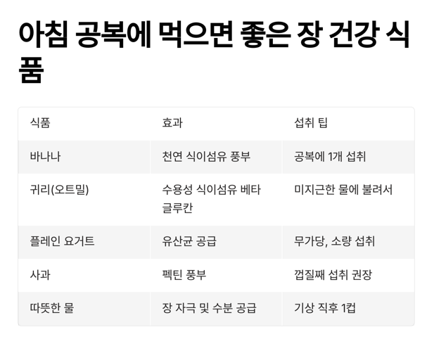 🥗 아침 공복에 먹으면 좋은 장 건강 식품 5가지