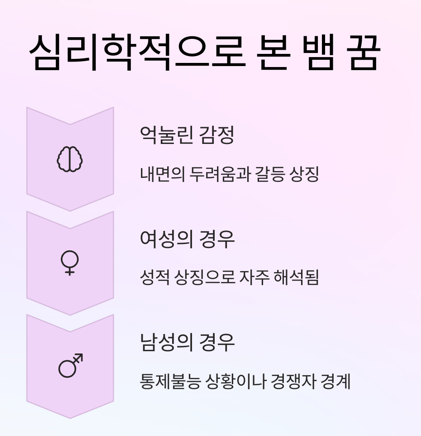 | 뱀이 내 몸에 감기는 꿈 | 성적 욕망, 억눌린 감정 |