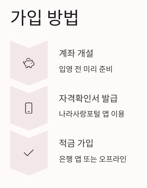 입영 전 미리 계좌 개설해두고, 입영 후 '나라사랑포털 앱'에서 자격확인서를 발급받아 은행 앱 또는 오프라인으로 가입하면 됩니다. 간편한 **비대면 가입**도 가능해졌어요. 은행별 이자율은 은행연합회에서 확인할 수 있어요.
