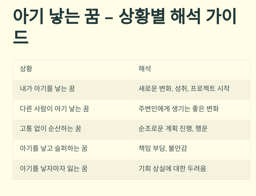 | 내가 아기를 낳는 꿈 | 새로운 변화, 성취, 프로젝트 시작 |